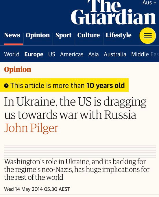 John Pilger wrote for the Guardian in 2014 about how our backing of neo-Nazis in Ukraine was leading to war with Russia. Many western officials echoed the sentiments. If anyone echoes those sentiments today, they will be dismissed as a Putin puppet, sacked from their jobs and driven out of public life.