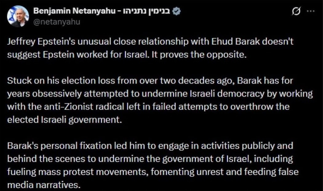 By now, you’re probably aware of Epstein’s close relationship with former Israeli prime minister Ehud Barak. People are citing this as evidence that Epstein worked for Israel, however, Netanyahu has denied this claim. He insists their relationship somehow proves the opposite!