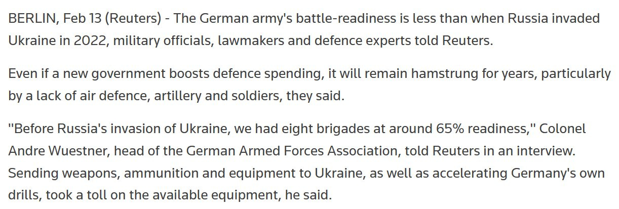 The one thing most likely to put a stop to this insanity is that Europe is not in a position to fight. Germany, in particular, is less equipped to fight a war than it was at the start because it has given so much of its weapons to Ukraine. I’m guessing many other European countries are in a similar position.
