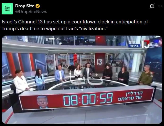 While Trump supporters are now denying his rhetoric was ever genocidal, it is clear that if he had fulfilled his threats, they would have cheered him on. We saw Laura Loomer posting “I can’t wait to see what gets blown up tomorrow” and Israeli TV had a countdown to the destruction of Iran. Zionists wanted another genocide, but we’re supposed to pretend the Iranians are the unhinged extremists?