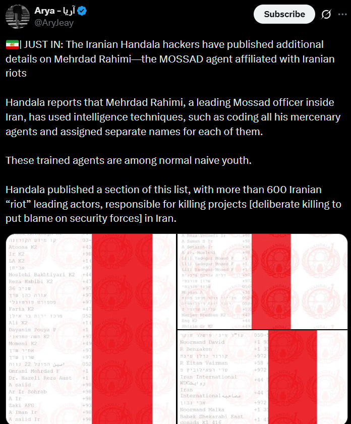 Anti-government riots have fizzled out and Iranians are still marching for their government, but that part is removed from the story. Why would you ignore that, unless your intention was to sow further unrest with a false narrative?