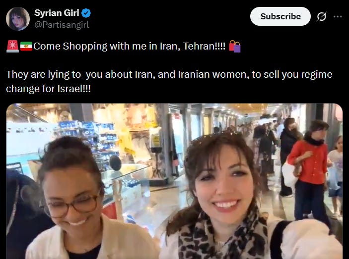 It’s not just the Iranians they don’t like who will suffer and die, but the ones they do like. Iranian women are about to be blown to pieces by the US, but hopefully those bombs are dropped by a female pilot, right? A girl boss?