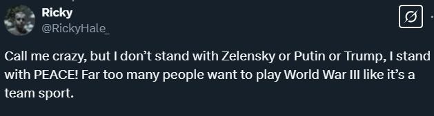 Neoliberals were so all over the place yesterday. My mentions were full of people telling me, of course we want peace, but then insisting that I was somehow wrong to call for peace. They said they wanted a lasting peace as though everyone else didn’t. They told me they wanted to extend the war, but that they didn’t want to extend the war! They told me they want to send troops and weapons to Ukraine, but they don’t want World War III. They told me that a negotiated settlement means surrender to Putin. They told me we can’t let Putin win under any circumstances. They told me I was an appeaser like Chamberlain for objecting to World War III. There was absolutely no coherence, just a stream of ways of saying they hated that I wanted peace and wasn’t blindly cheering for their team. Not a single one of them showed the slightest understanding of the political situation in Ukraine, or any consideration for the hundreds of thousands of Ukrainians they would throw into the meat grinder. They just wanted to be able to say their team has won.