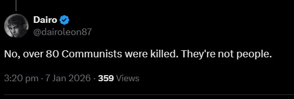 It’s not just the collapse of the rules-based order that we are witnessing, but the collapse of any pretence of the free market. Trump is demanding total obedience from Venezuela, Mexico, Colombia and Cuba, so if you are using words like “liberation”, I can’t take you seriously. None of these countries want to be ruled by Trump. As his supporters realise this, Latin Americans go from being desperate victims in need of a saviour to commie savages who deserve everything they get.