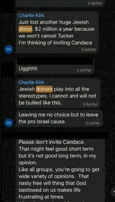 Kirk was getting threatened and harassed by Zionist donors