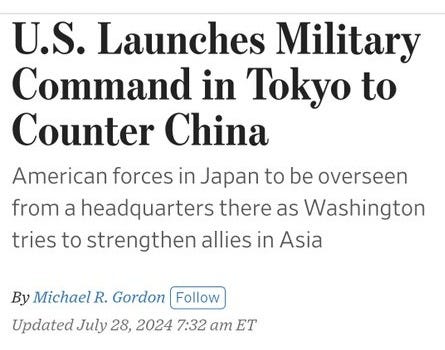 For example, the US launched a military command centre in Tokyo last year to “counter” (they mean attack) China. It discussed weapons production and even “extended deterrence” which means nukes in Japan - a touchy subject given the US nuked Japan not once but twice. Imagine allying yourself with a country that did that to you!