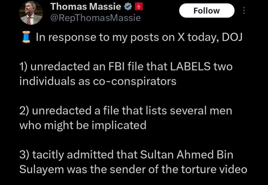 Now the DOJ is revealing some of the names it had concealed, likely due to pressure from Massie, Rep Ro Khanna, and others. It feels like we are finally getting some answers, although I suspect some of the names are ones the ruling class is prepared to sacrifice.