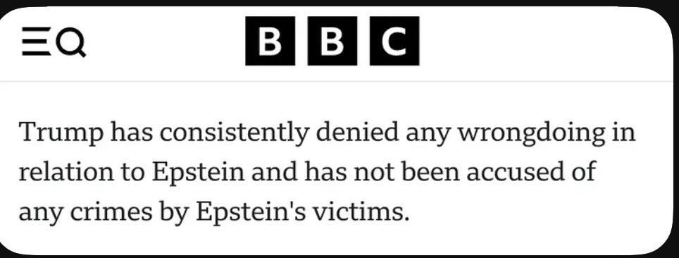 Before we dive into the Epstein files, let’s establish what we know as fact: Donald Trump has been found in a civil court to be a rapist. He raped E. Jean Carroll and had to pay her substantial compensation. He has boasted repeatedly on camera about sexually assaulting women: “grab ‘em by the pussy” etc., and he has admitted to things like walking into the dressing rooms of underage girls. Those things aren’t speculation, they’re provable, and they show a pattern of predatory behaviour. That alone is enough to demonstrate the obscenity of the BBC’s framing.