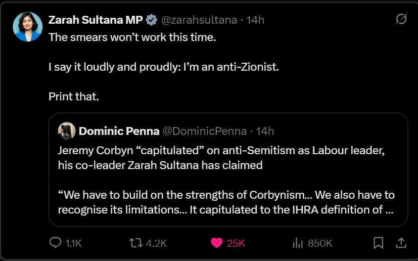 Zarah has proudly declared she is anti-Zionist and explained that the Labour Party capitulated to the IHRA guidelines during the Corbyn years. Overwhelmingly, the people who are…